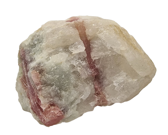 Roher rosafarbener Turmalin mit Quarz, 147g