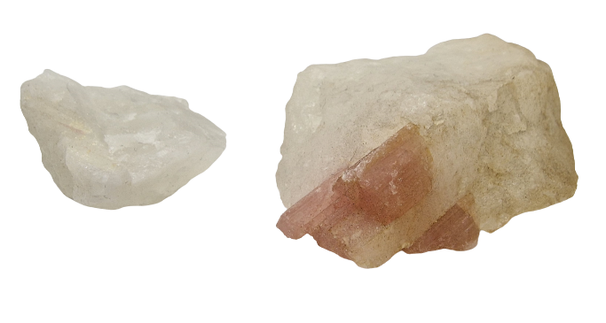 Roher rosafarbener Turmalin mit Quarz, 87g